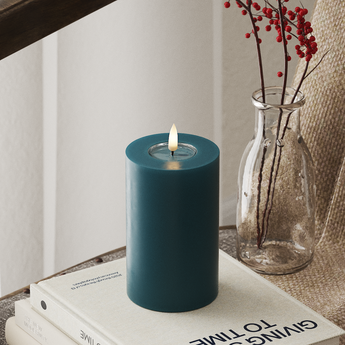 LED Bloklys Ø 7,5 x 12,5 cm Petroleum