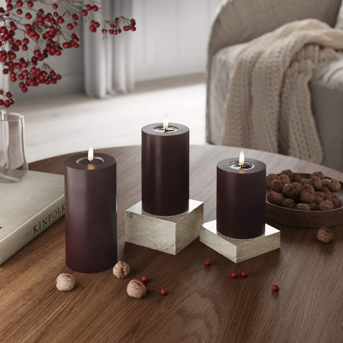 LED Bloklys Ø 7,5 x 15 cm Bourgogne - 4 stk