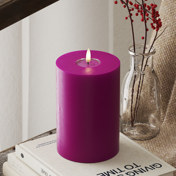 Dette elegante LED bloklys i Violet tilbyder en virkelighedstro 'Real Flame'-effekt, der er så naturtro som et ægte stearinlys. Med en højde på 15 cm og en diameter på 10 cm er hvert LED bloklys omhyggeligt fremstillet i stearin & resin, udstyret med en livagtig 3D-flamme og en unik belægning af resin i toppen. Denne særlige kombination skaber ikke kun en autentisk følelse, men giver også det karakteristiske 'wet look', der efterligner smeltet stearin perfekt.