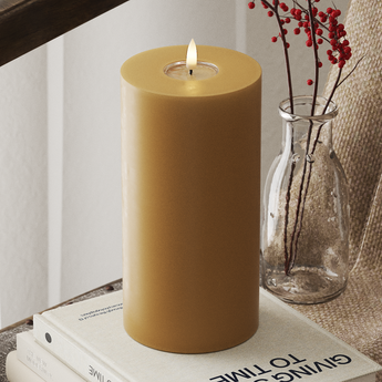Dette elegante LED bloklys i Karry tilbyder en virkelighedstro 'Real Flame'-effekt, der er så naturtro som et ægte stearinlys. Med en højde på 20 cm og en diameter på 10 cm er hvert LED bloklys omhyggeligt fremstillet i stearin & resin, udstyret med en livagtig 3D-flamme og en unik belægning af resin i toppen. Denne særlige kombination skaber ikke kun en autentisk følelse, men giver også det karakteristiske 'wet look', der efterligner smeltet stearin perfekt.