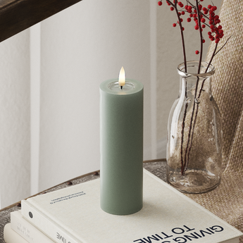 LED Bloklys Ø 5 x 15 cm Salvie Grøn