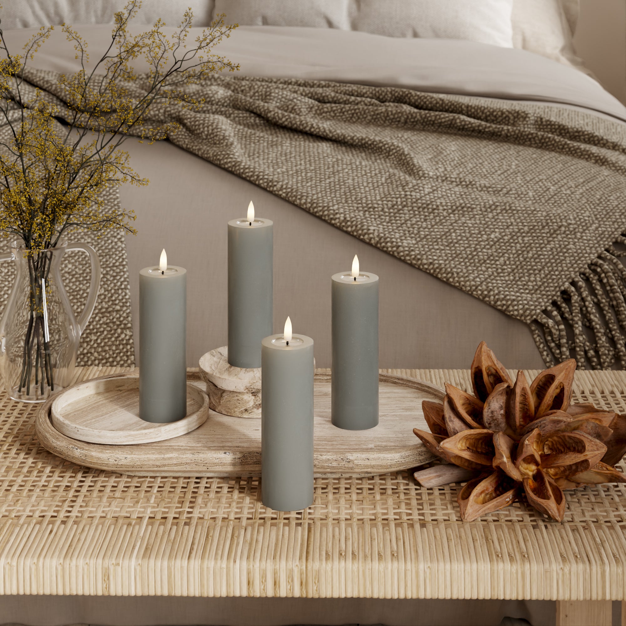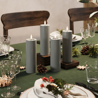 LED Bloklys Ø 5 x 15 cm Grå - 4 stk